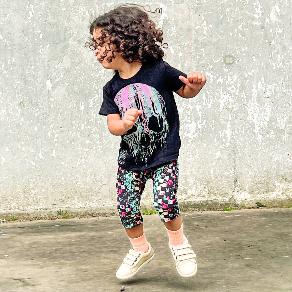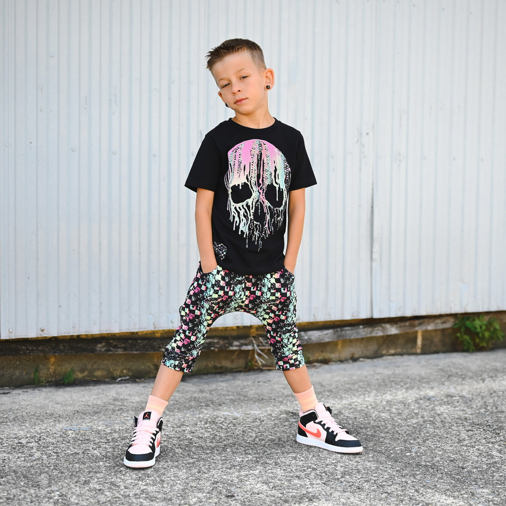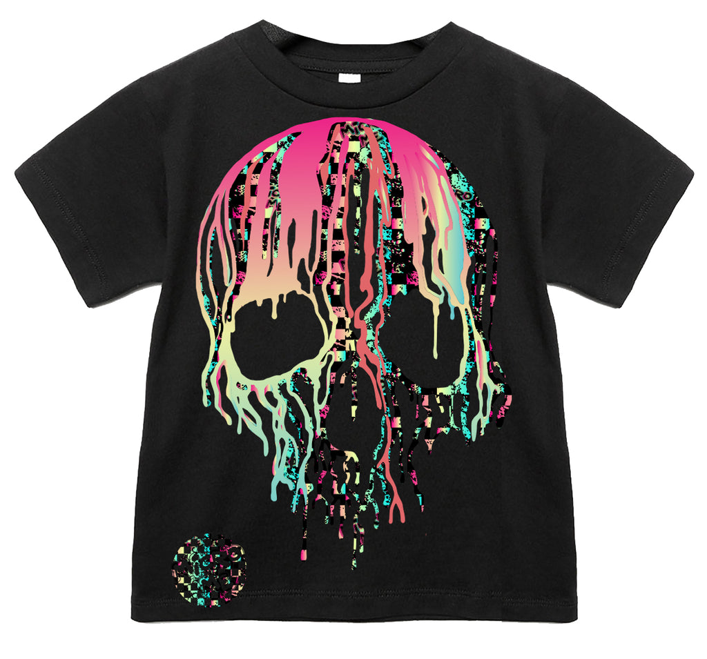 Check Distressed Drip Skull Tee, Black (Infant, Toddler, Youth, Adult)