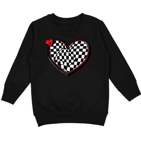 Checker Heart Crew Sweatshirt, Black (Toddler, Youth, Adult)