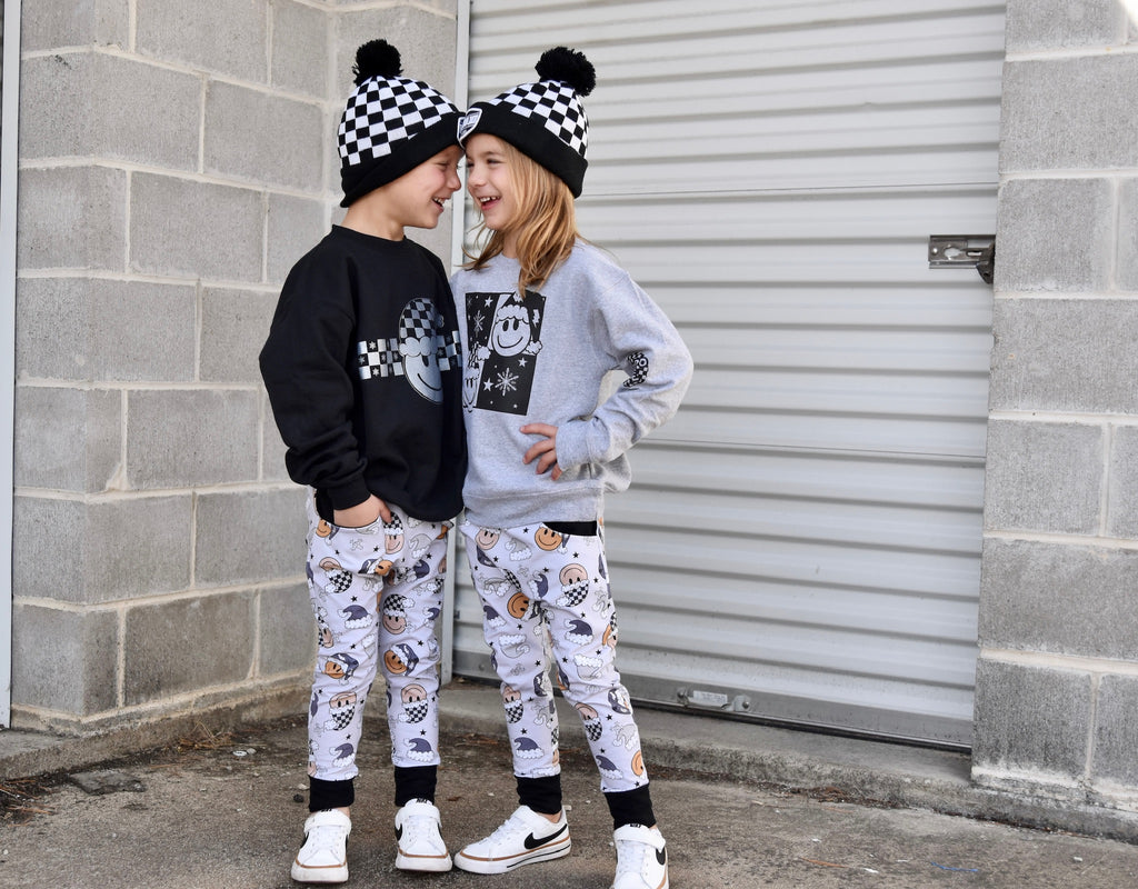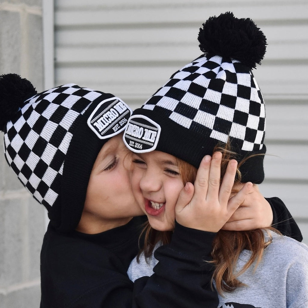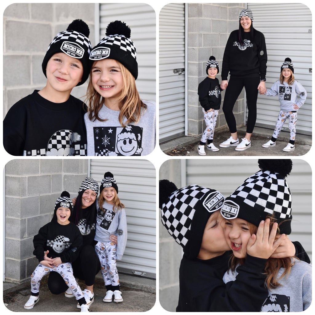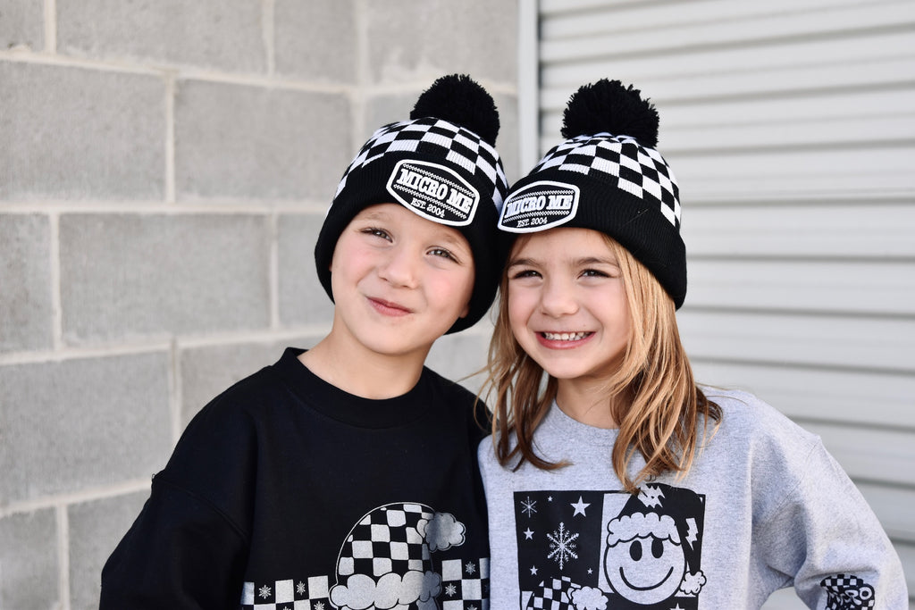 You can't go wrong with checkerboard!!! These soft, knit beanies are warm and cozy! Fits most infant to 5 years. For larger sizes see our unfolded version!