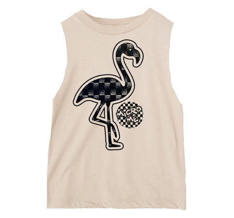 Denim Check Flamingo Muscle Tank, Natural (Infant, Toddler, Youth, Adult)