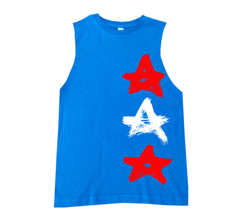Distressed Stars Muscle Tank, Neon Blue (Infant, Toddler, Youth, Adult)