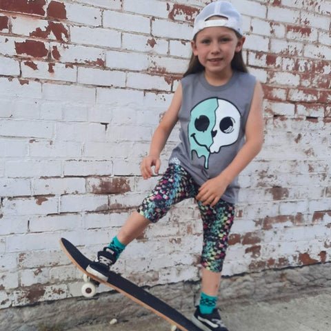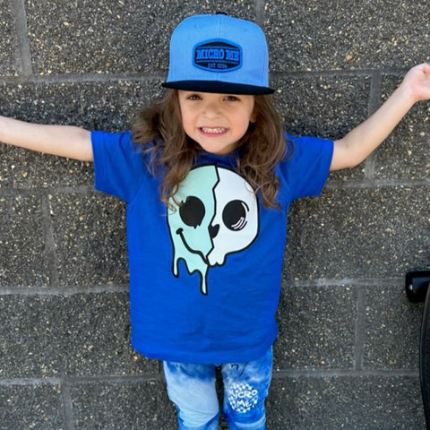 Micro Me is inspired by SURF-SKATE-and PUNK.....since 2004! These new skelly happy face graphics will become a fave in your littles closet! Offered in our tees, muscle tanks, muscle hooded fleece, and rompers! Matching styles for moms & dads!