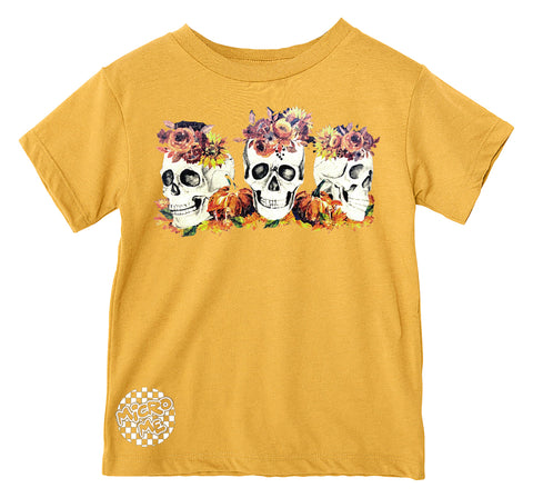 Fall Floral Skulls Tee, Gold (Infant, Toddler, Youth, Adult)