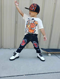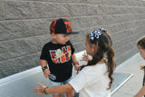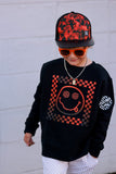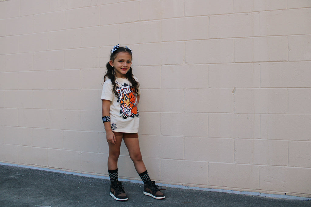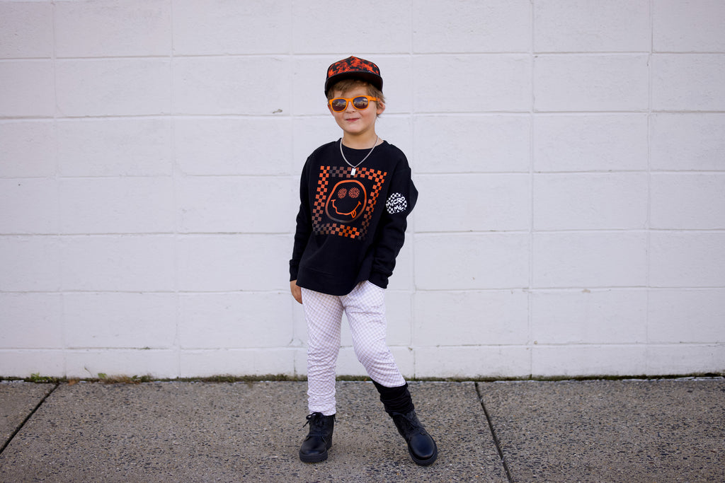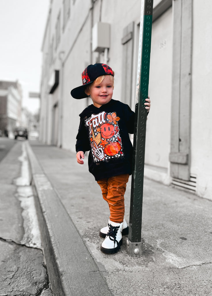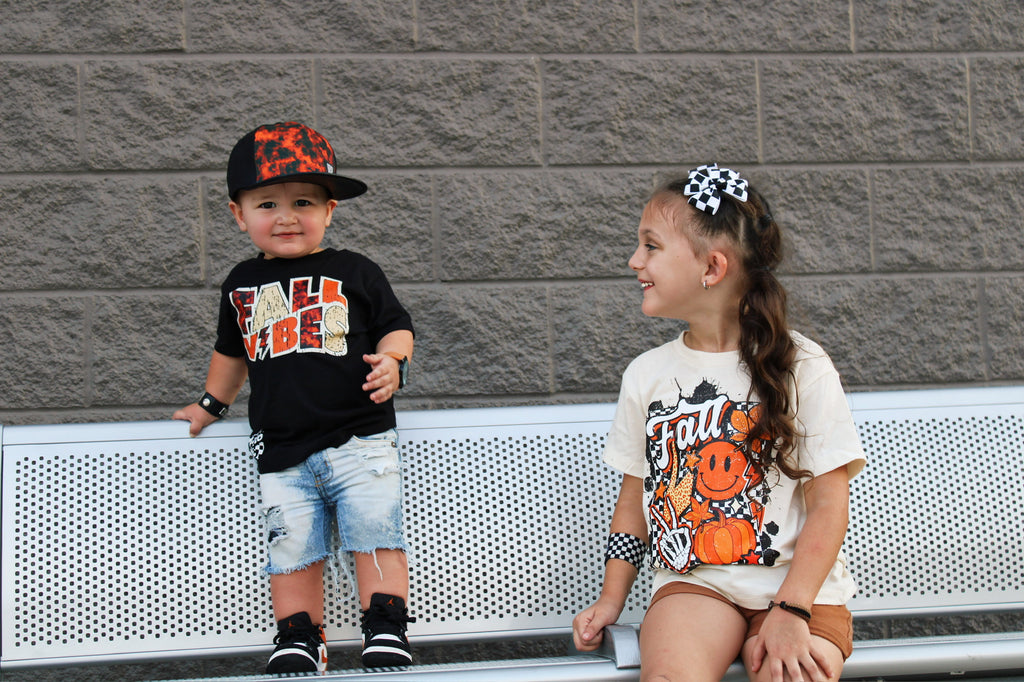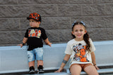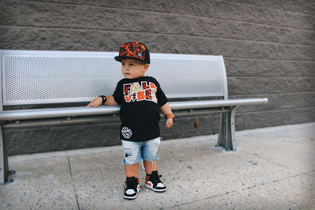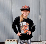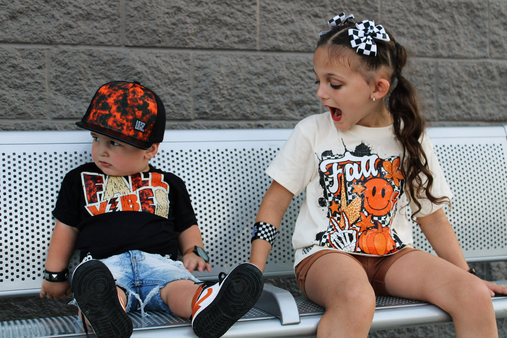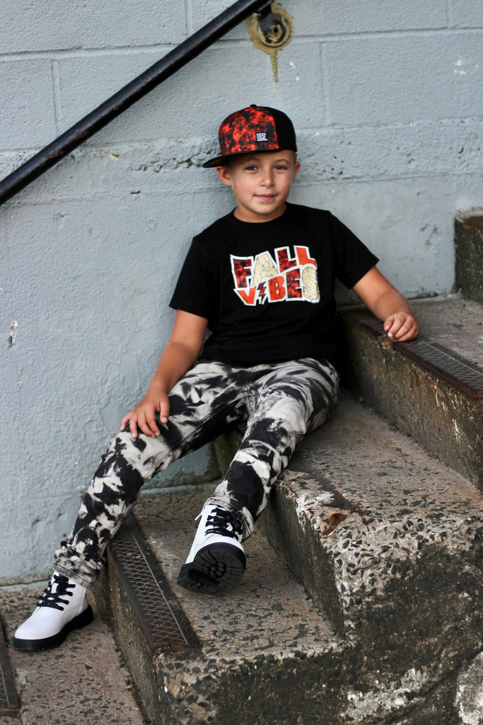 Our FALLoween Tie Dye Exclusive features our custom & exclusive Falloween Tie Dye print with black color blocking, and black leather brim. 5 full panel design, Lidz Logo woven label and our SIGNATURE checkerboard tape detailing. with matching made to order styles from Micro Me
