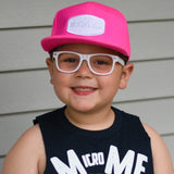 Frames are the cutest on the babes! Plastic frame, kid sized. No lenses!