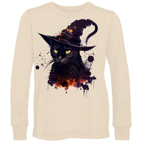 Witchy Kitty Long Sleeve Shirt, Natural (Youth, adult)