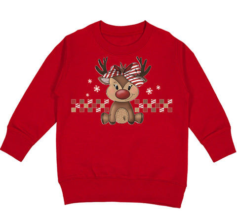 Girly Reindeer Crew Sweatshirt, Red  (Toddler, Youth, Adult)