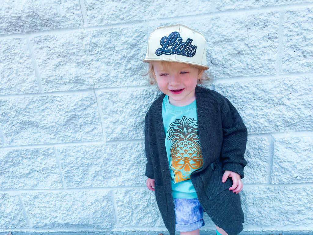 MM Lidz is out to create the perfect matching sets!! New, fun hats with graphics for your babies, toddlers, kids, and matching styles for moms & dads! This set is perfect for summer!! Bright gold faux leather hat matches all these pineapple skulls!!
