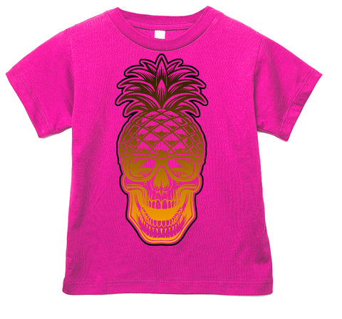 Gold Pineapple Skull Tee, Hot Pink (Infant, Toddler, Youth, Adult)