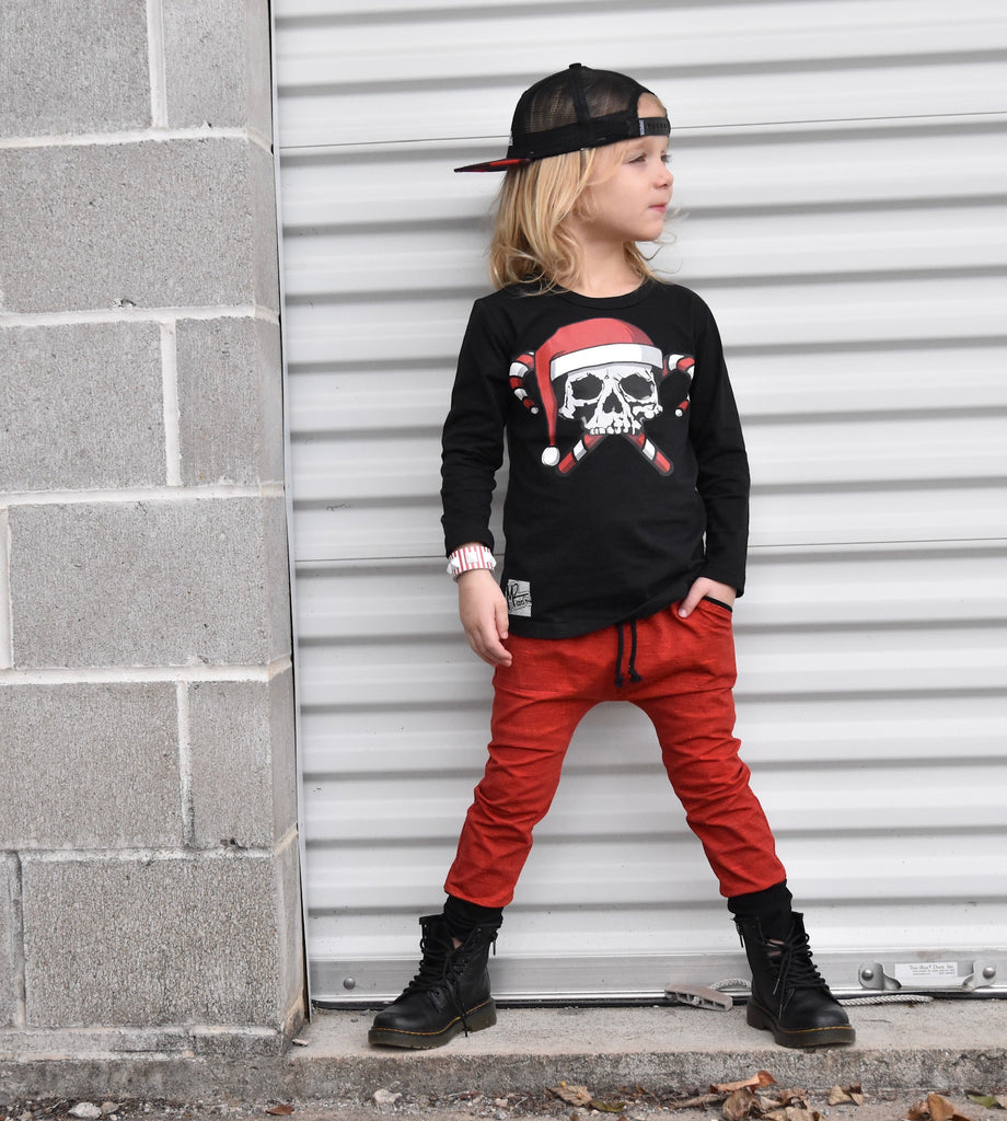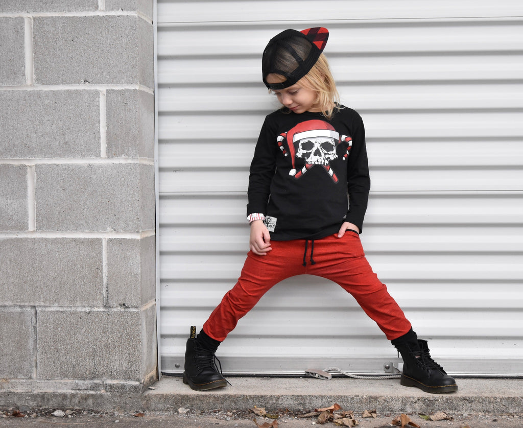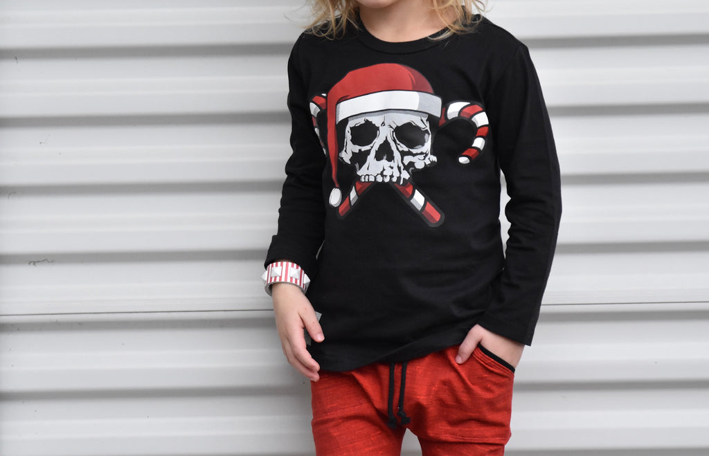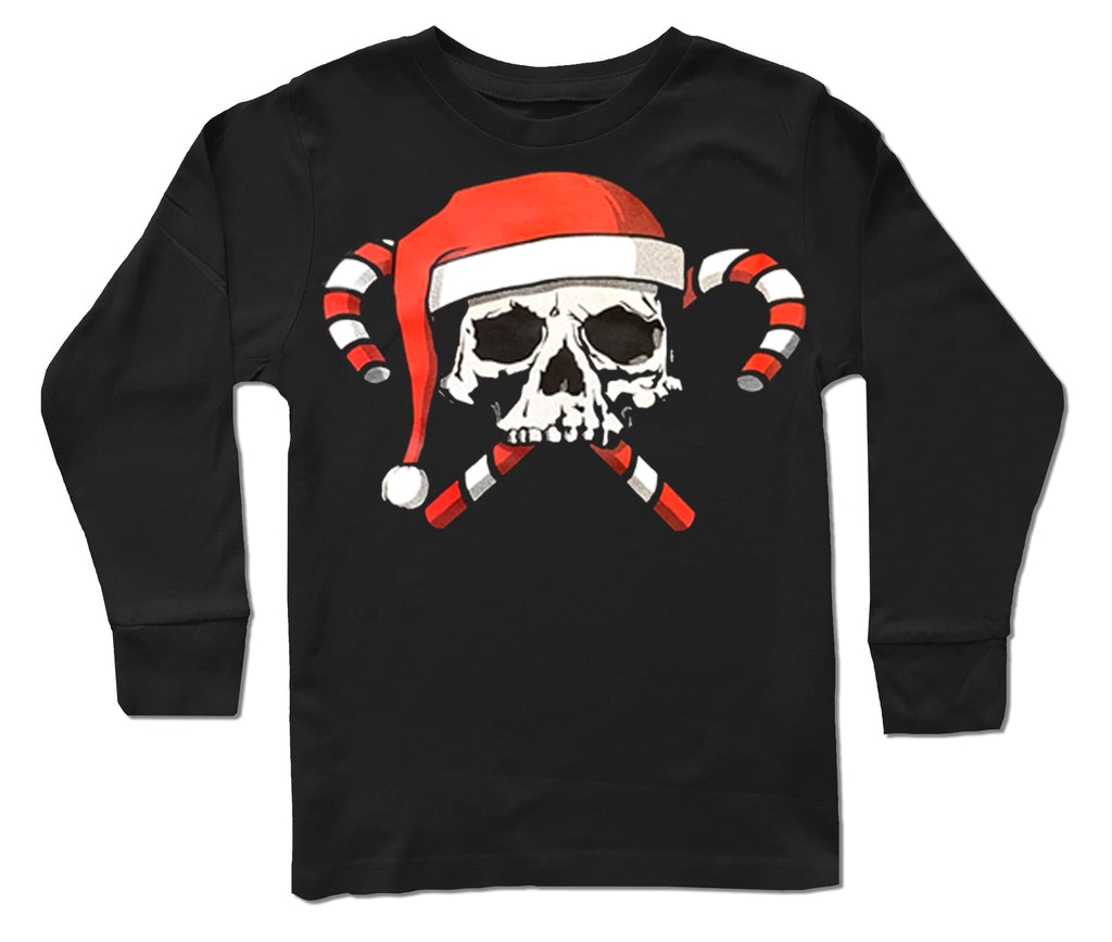 Candy Cane Skull Long Sleeve Shirt, Black (Infant, Toddler, Youth)