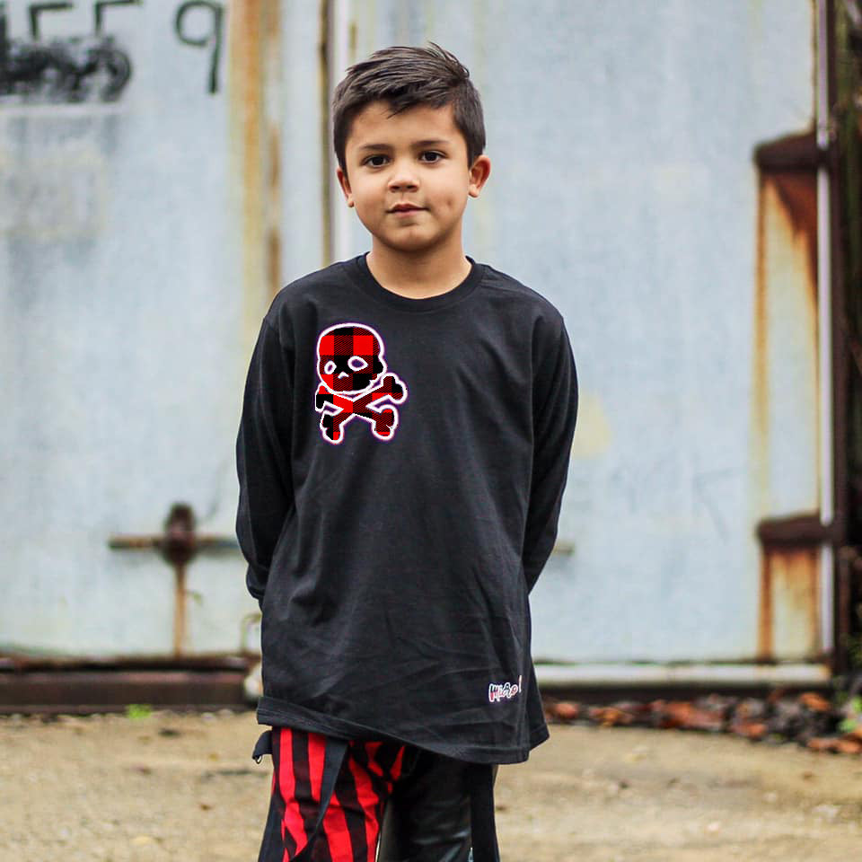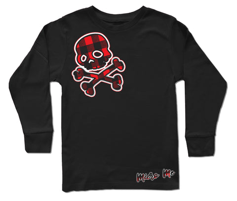 Red Plaid Skull Long Sleeve Shirt, Black (Infant, Toddler, Youth,Adult)