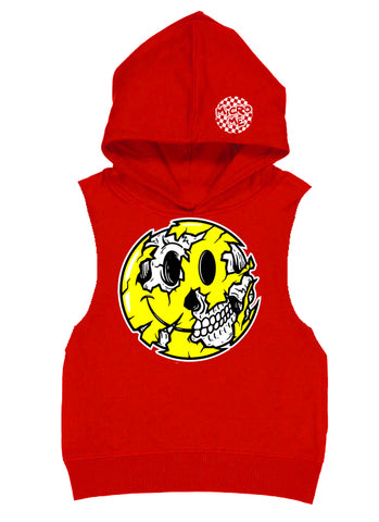 Happy Skull Fleece Muscle Tank, Red (Toddler, Youth, Adult)