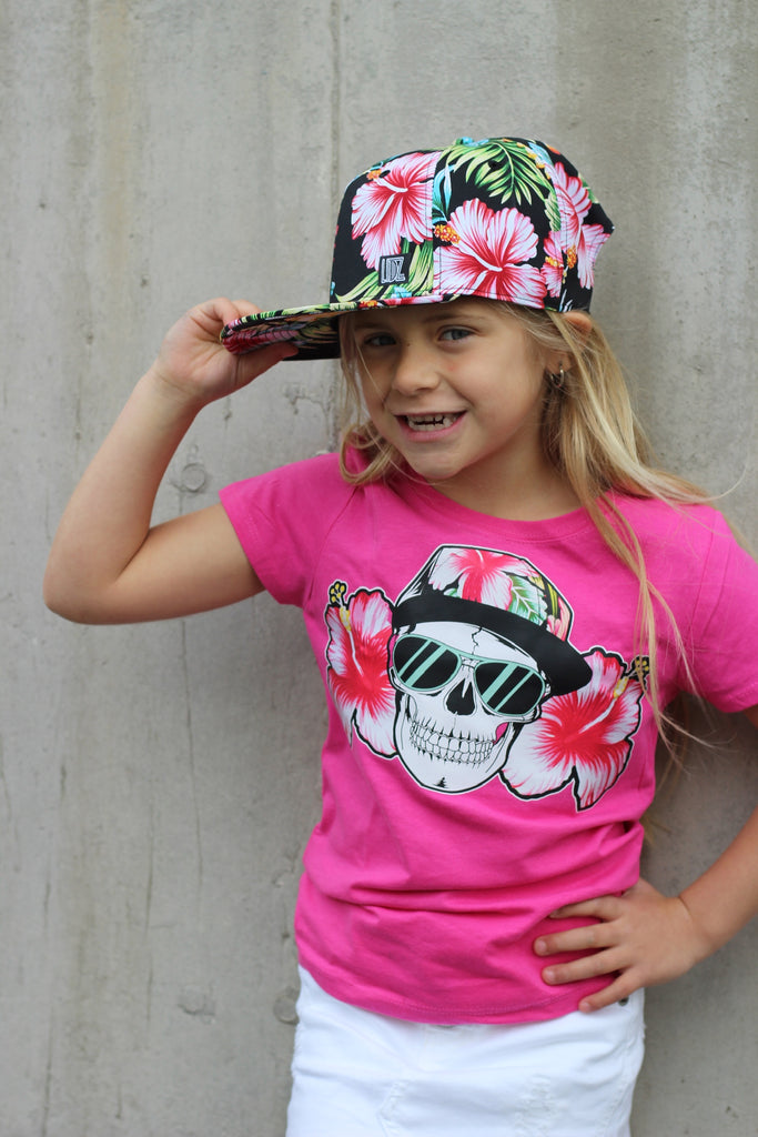 Hawaiian Floral Snapback, Black (Infant/Toddler, Child, Adult)