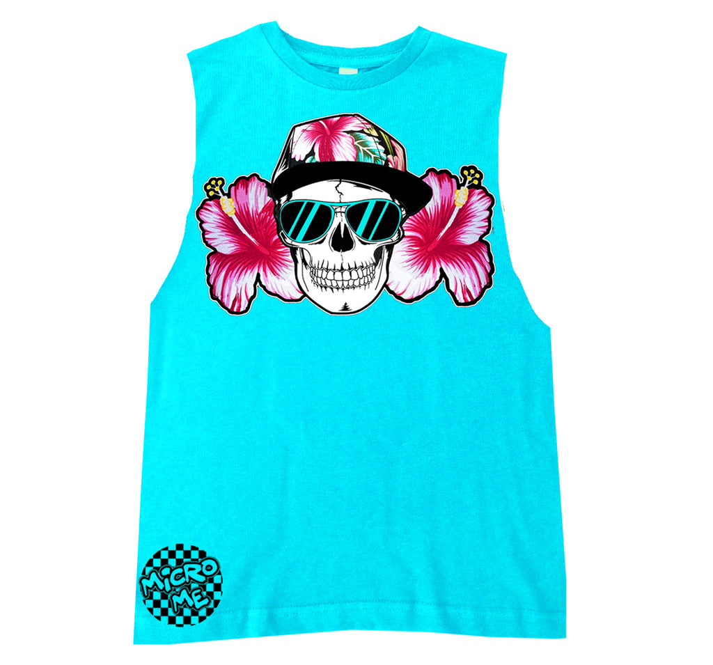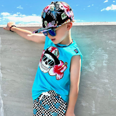 Hawaiian Floral Skull Tank, Black (Infant, Toddler, Youth, Adult)