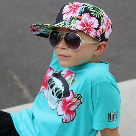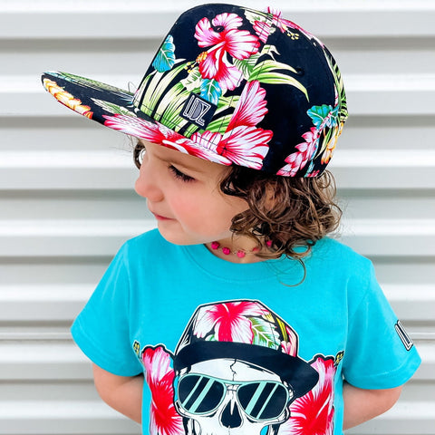 Hawaiian Floral Snapback, Black (Infant/Toddler, Child, Adult)