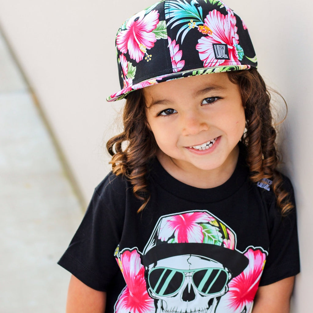 Hawaiian Floral Snapback, Black (Infant/Toddler, Child, Adult)