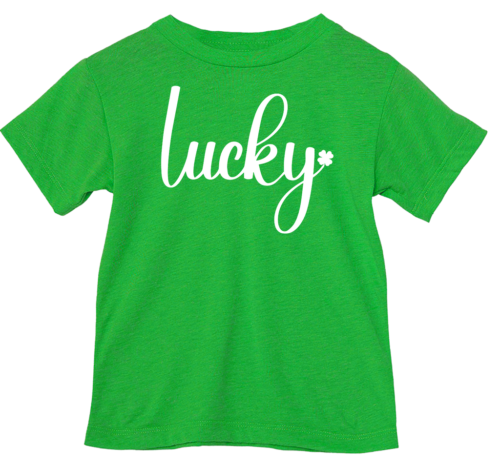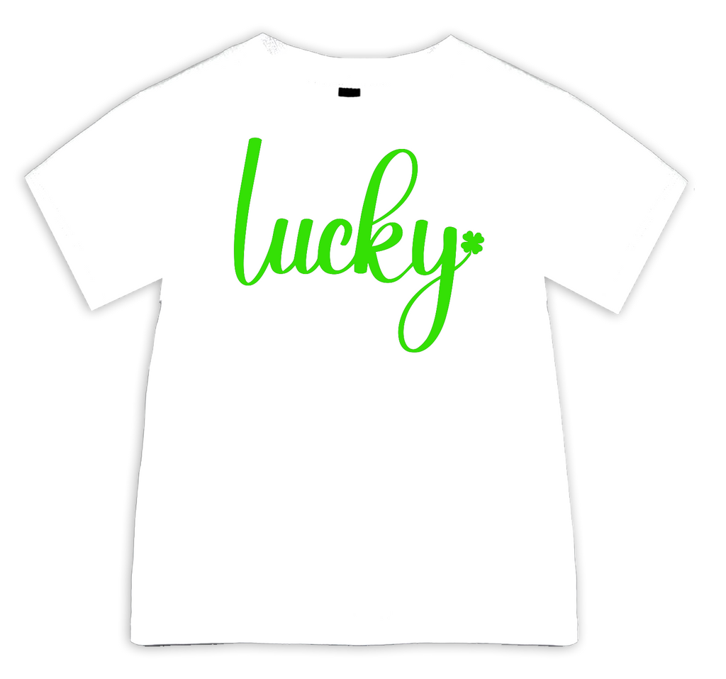 Make sure you are pinch proofed! Black leopard tee shirt screened with a simple yet perfect Lucky design.