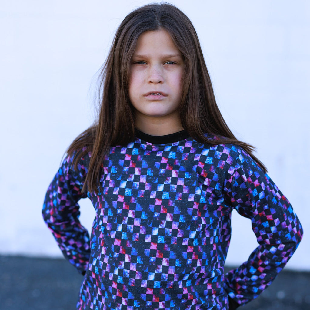 This crew sweatshirt is designed with comfort and style in mind, featuring a relaxed fit, ribbed and cuffed waist, neck, and wrist bands. The double brushed poly fabric ensures a soft and cozy feel, perfect for lounging or active play. The unique prints make each crewneck a special piece in your wardrobe.