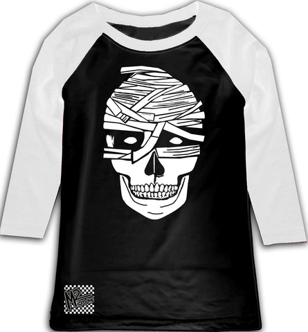 Mummy Skull Raglan, Blk/Wht (toddler, youth, adult)