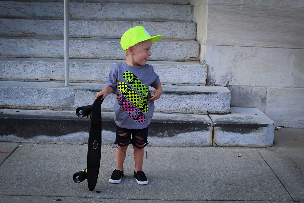 Neon skateboards in checkerboard....of course!   Skate inspired tees for babies, toddlers, kids, youth, and even matching styles for mom & dad!  Our tees our fashionable and soft! Made from a soft cotton-poly blend these will quickly become a fave in the closet!