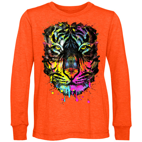 Neon Tiger LS Shirt, Orange  (Toddler, Youth , Adult)