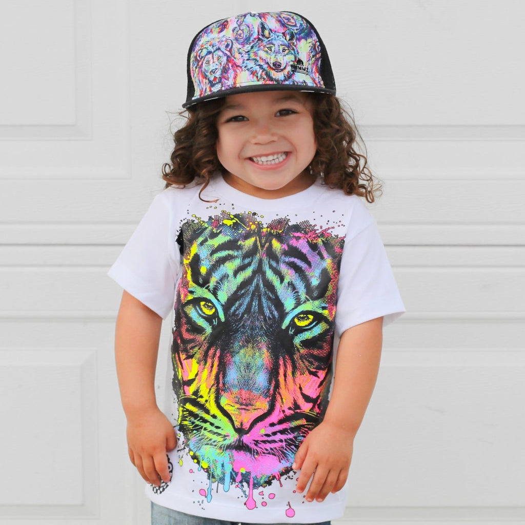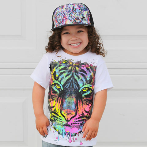 Neon Tiger Tee, White (Toddler, Youth, Adult)