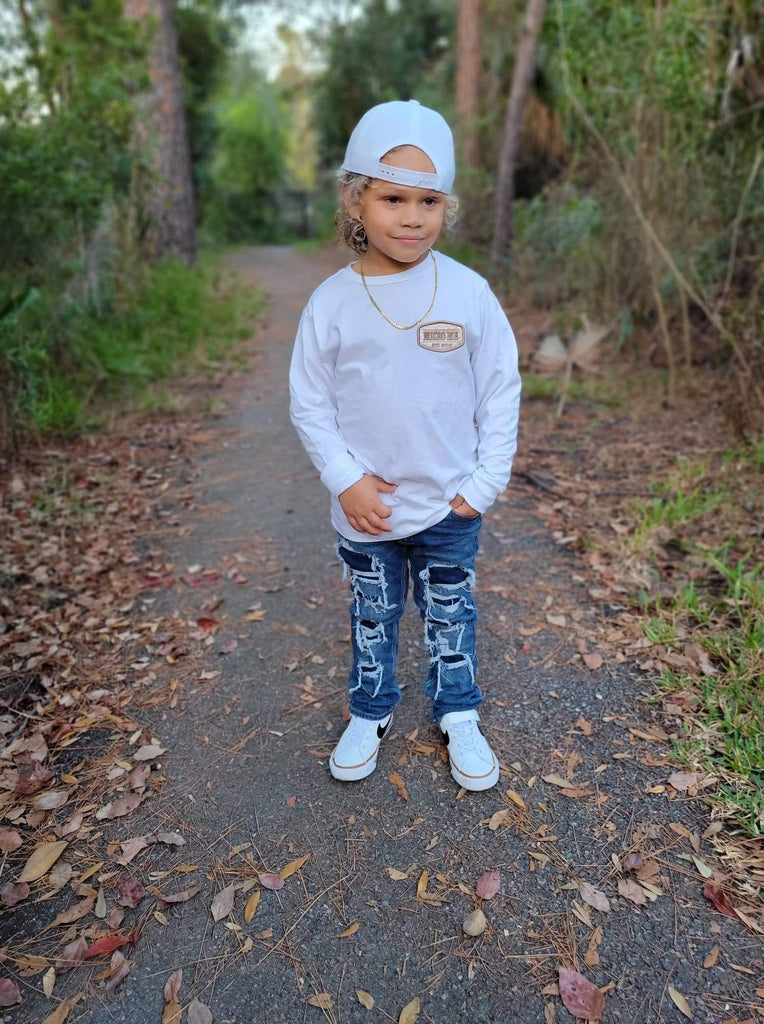 *Marble Happy Face Long Sleeve Shirt, White (Infant, Toddler, Youth, Adult)