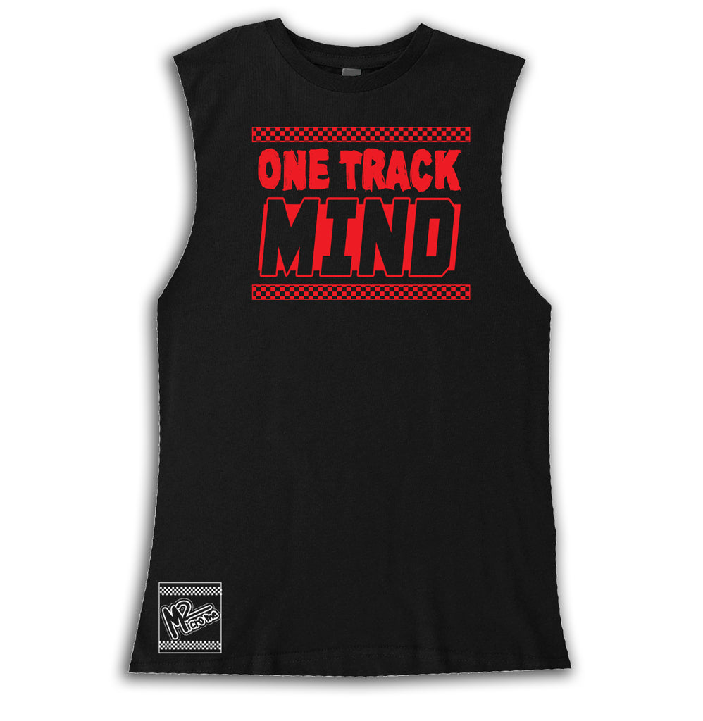 One Track Mind Tee OR Muscle Tank, Black- (6M-Adult)