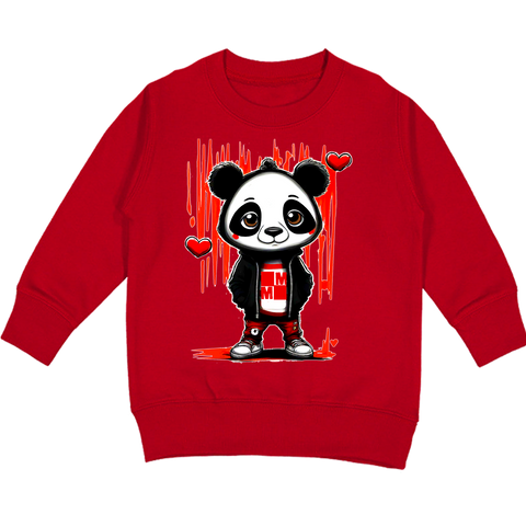 Panda Love Crew Sweatshirt, Red (Toddler, Youth, Adult)