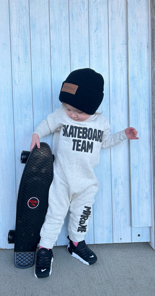 *SKATEBOARD TEAM Puff Fleece Romper, Natural (Infant)