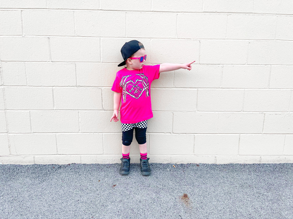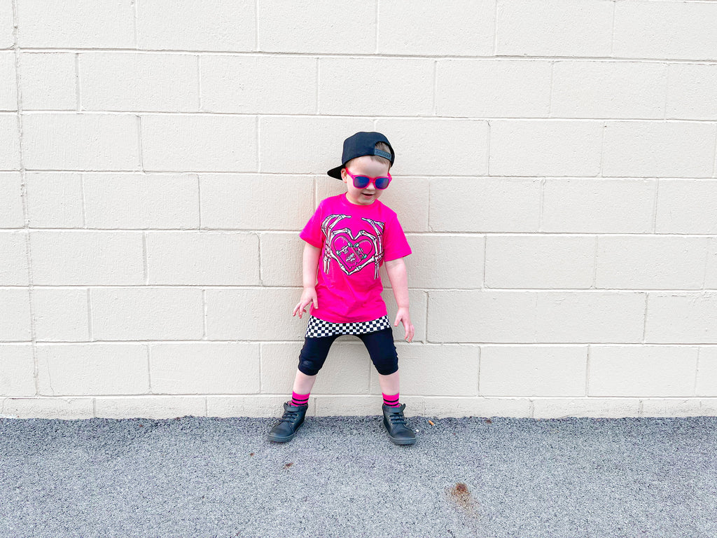 Skelly Heart Hands Tee, Hot Pink  (Infant, Toddler, Youth, Adult)