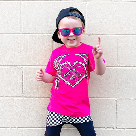 Skelly Heart Hands Tee, Hot Pink (Infant, Toddler, Youth, Adult)