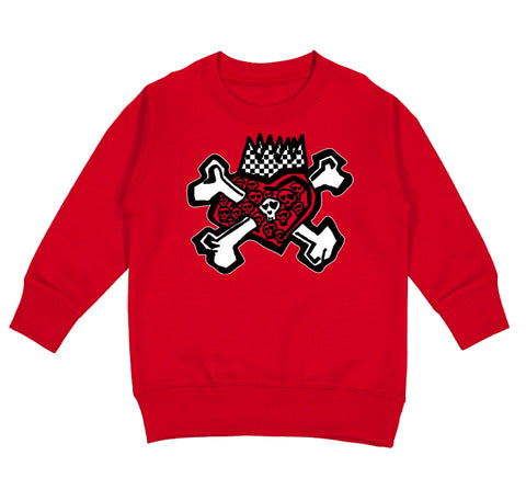 Skull Heart Crew Sweatshirt, Red (Toddler, Youth, Adult)