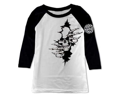 Skull Peeping Raglan, W/B (Toddler, Youth)