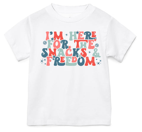 Snacks & Freedom Tee, White (Infant, Toddler, Youth, Adult)