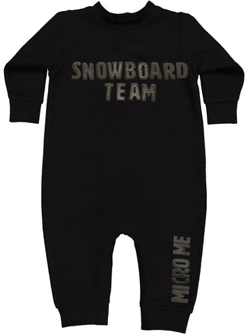 SNOWBOARD TEAM Puff Fleece Romper, Black (Infant)