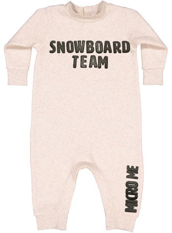 SNOWBOARD TEAM Puff Fleece Romper, Natural (Infant)