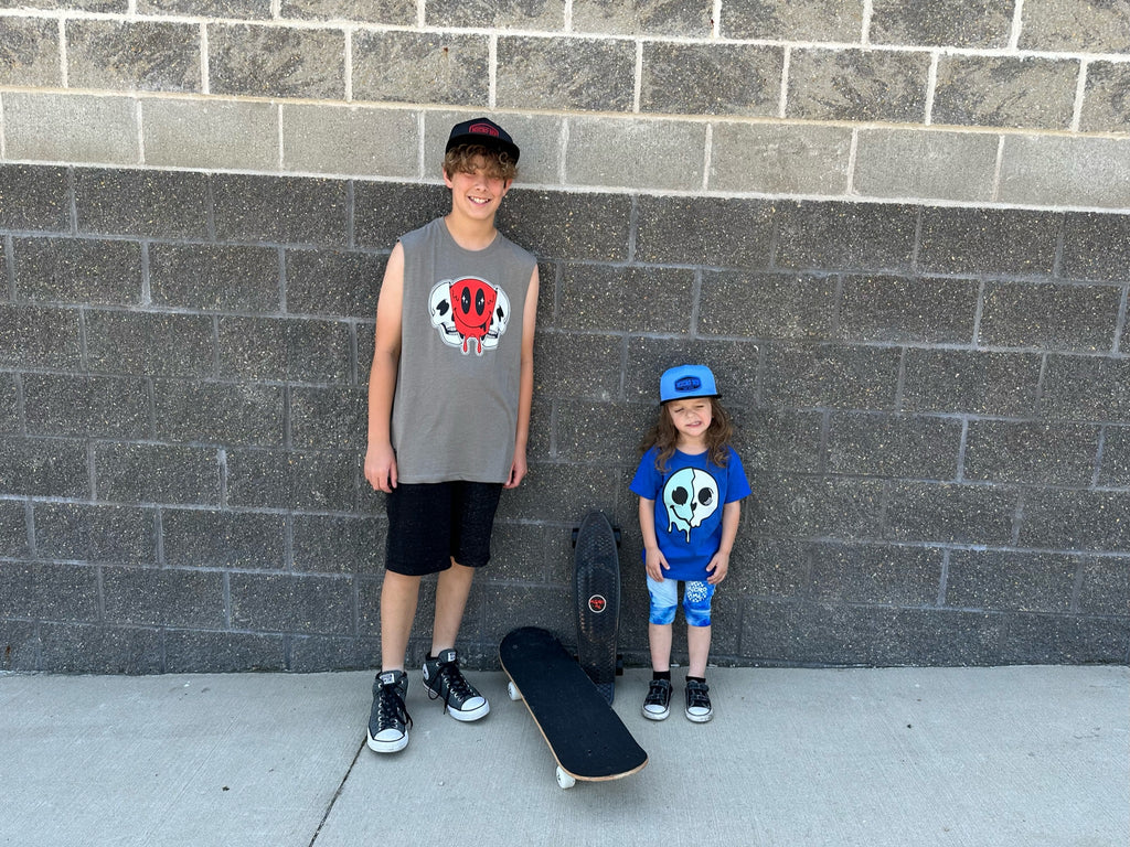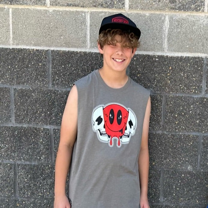 Micro Me is inspired by SURF-SKATE-and PUNK.....since 2004!  These new skelly happy face graphics will become a fave in your littles closet!  Offered in our tees, muscle tanks, muscle hooded fleece, and rompers!  Matching styles for moms & dads!