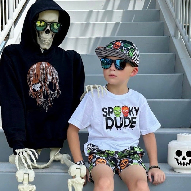 Spooky DUDE Skull Tee, White  (Infant, Toddler, Youth, Adult)