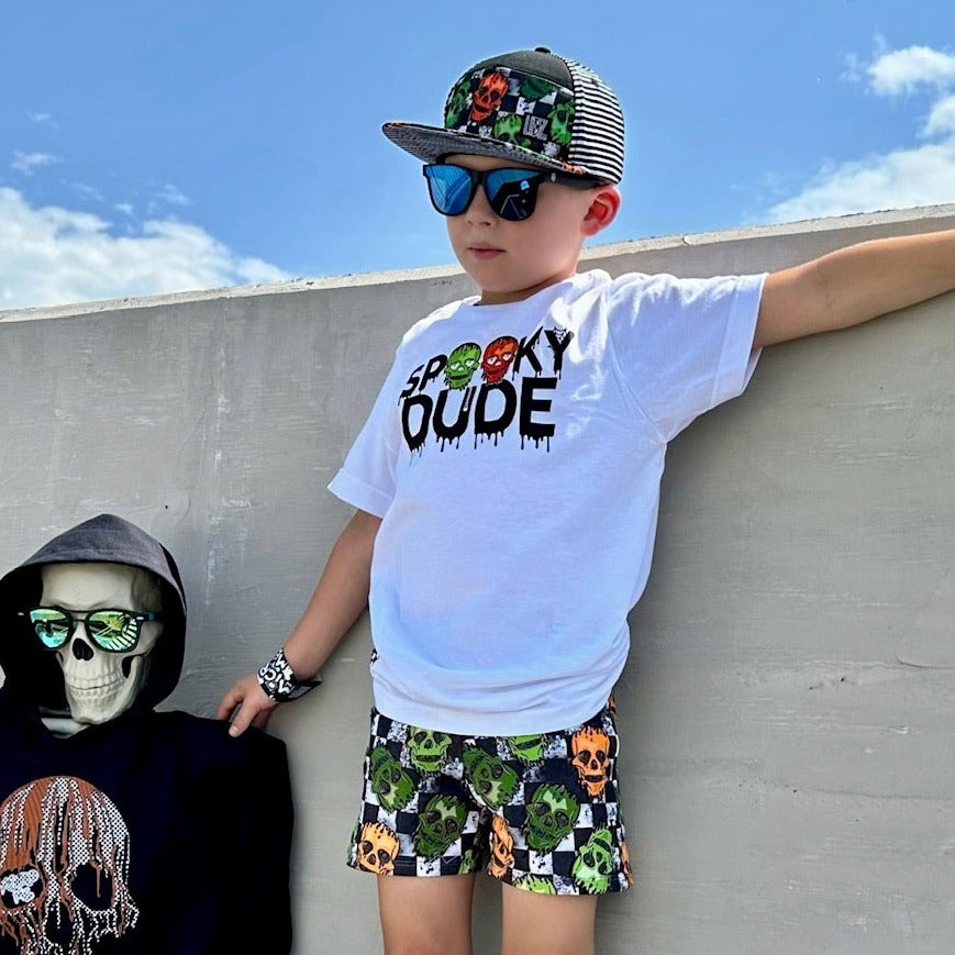 Spooky DUDE Skull Tee, White (Infant, Toddler, Youth, Adult)