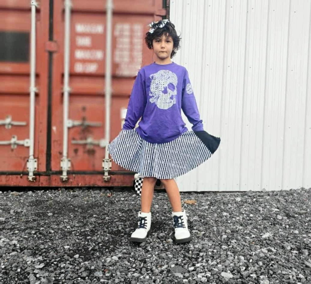 Stripe Skull LS Shirt, Purple (Infant, Toddler, Youth, Adult)