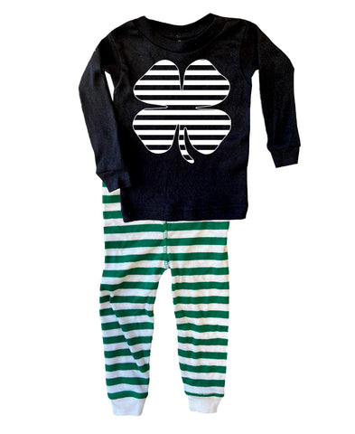 Striped Clover Jammies, Green Stripe/Black (Infant, toddler, youth,adult)