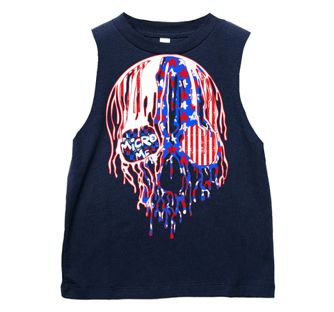 USA Drip Skull Muscle Tank, Navy  (Infant, Toddler, Youth, Adult)