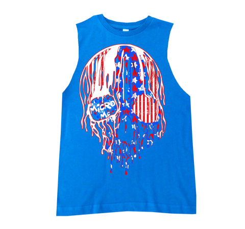 USA Drip Skull Muscle Tank,Neon Blue (Infant, Toddler, Youth, Adult)