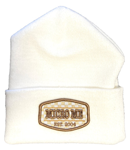 White Beanie, Khaki Patch (MEDIUM/LARGE)